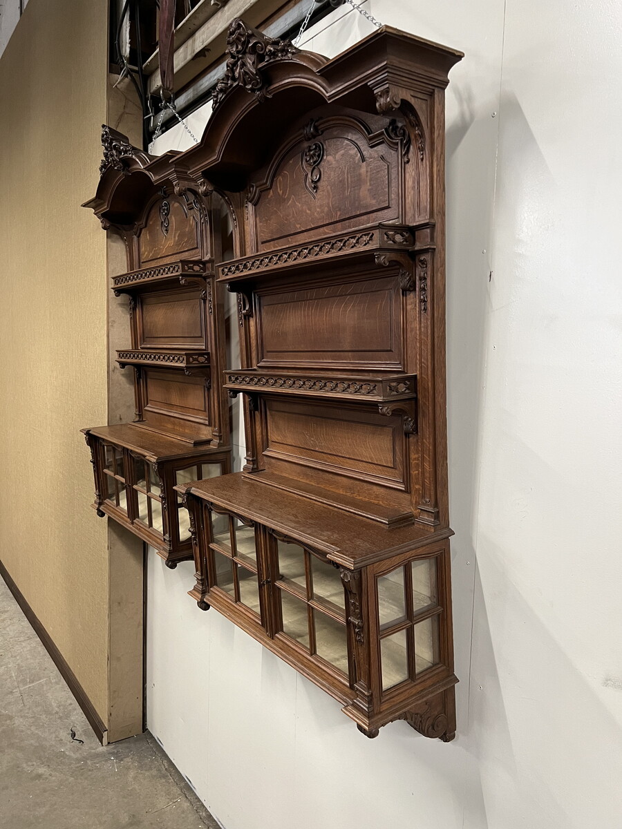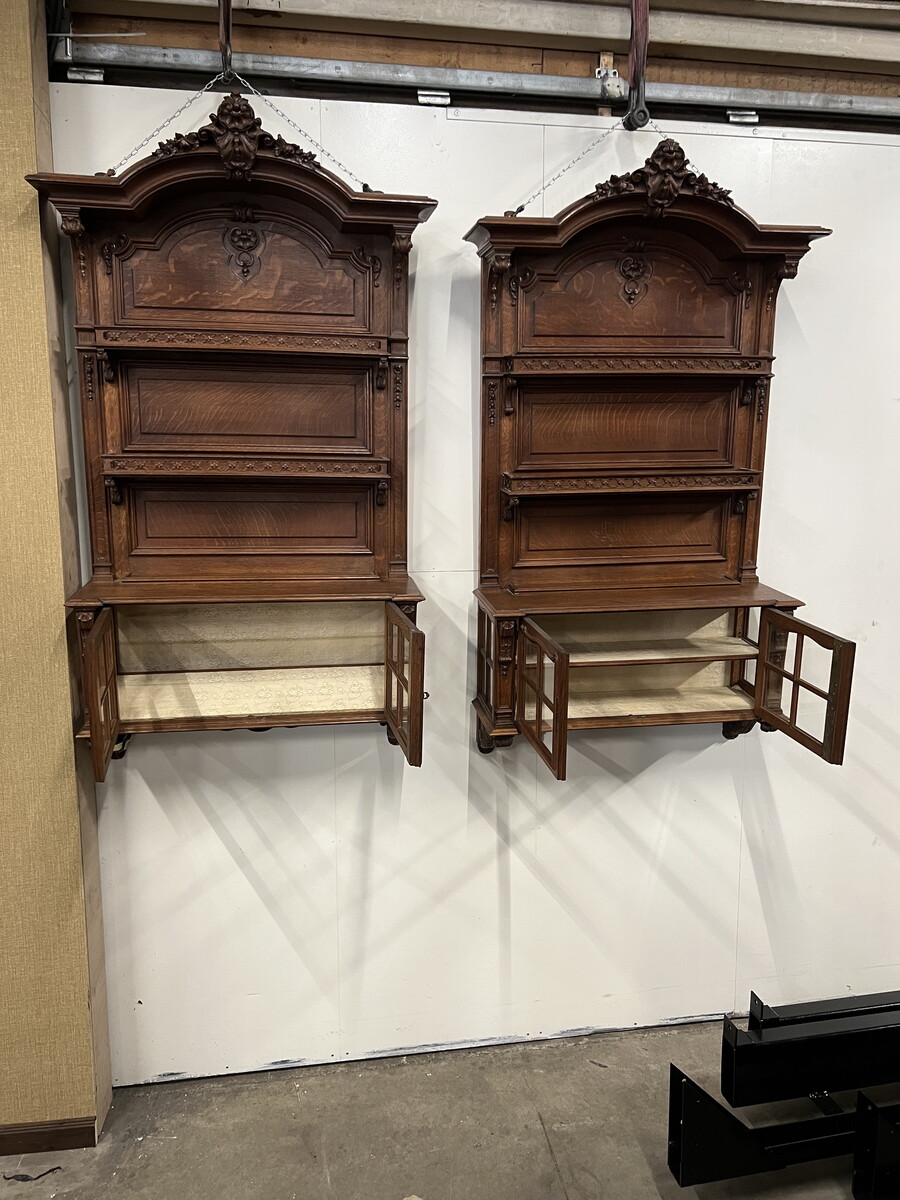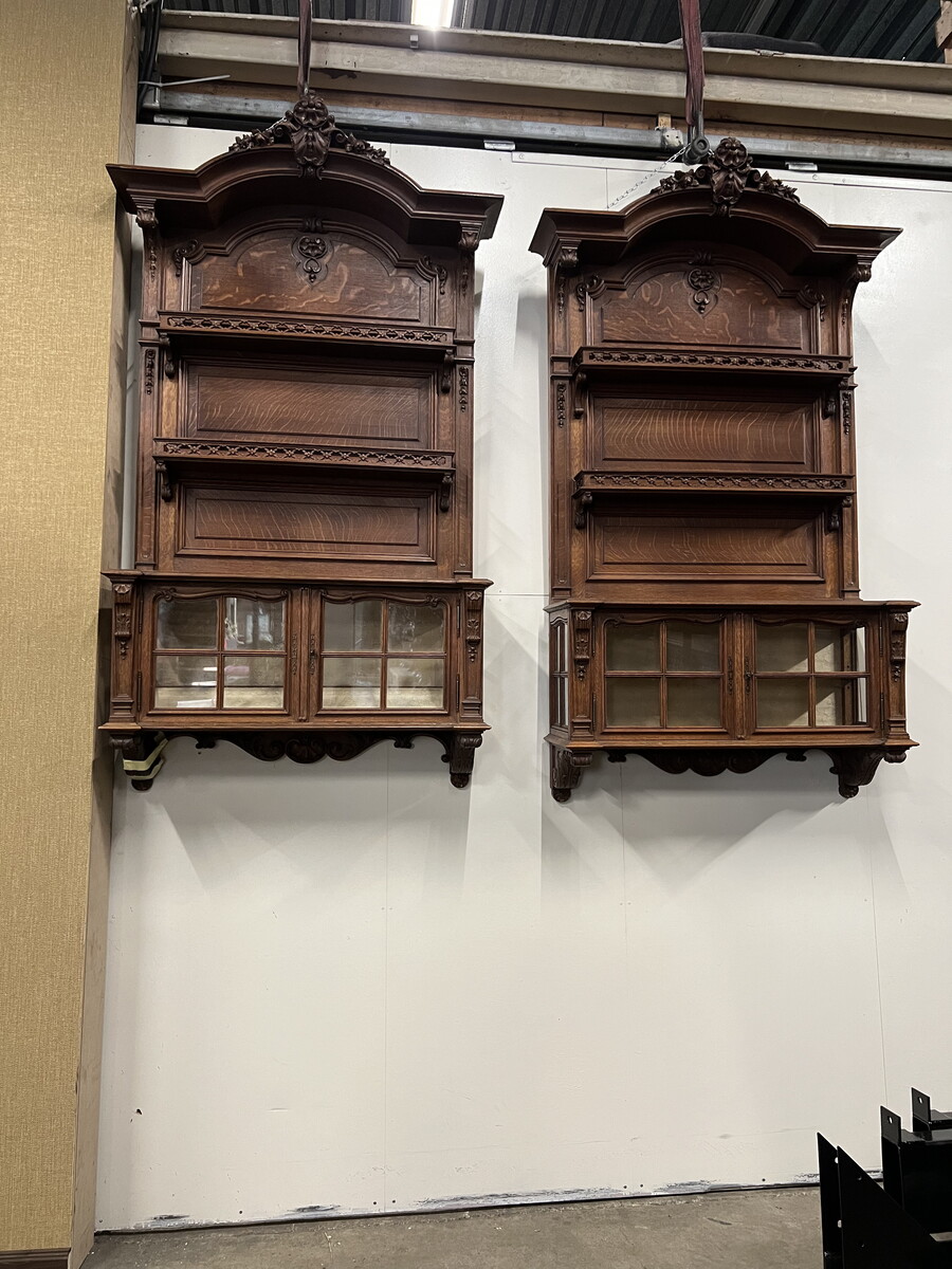 Louis XV Pair of French oak wood wall cabinets/vitrines.