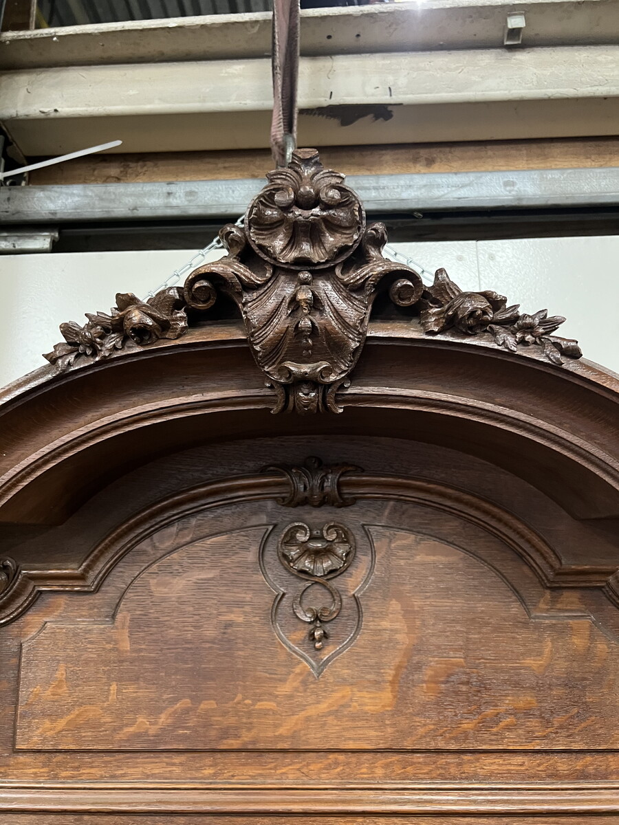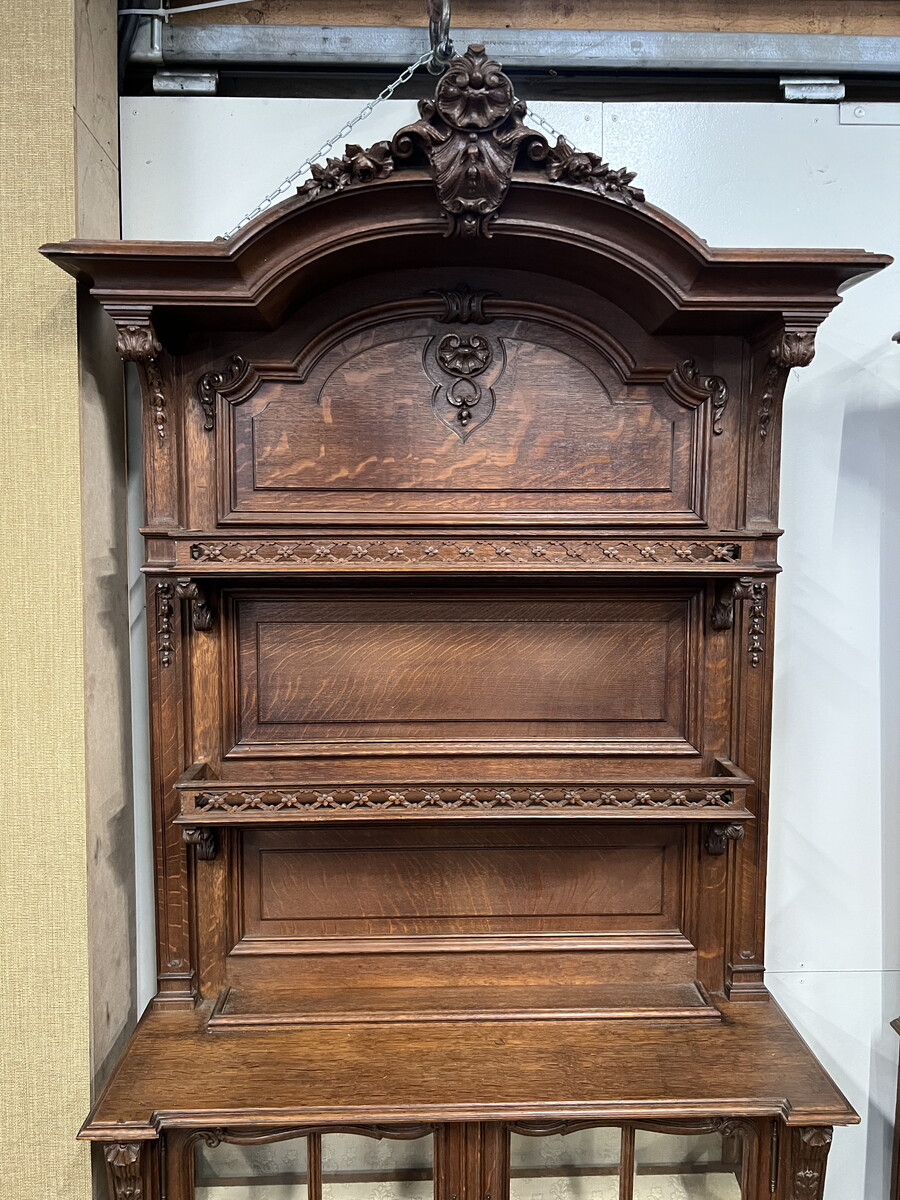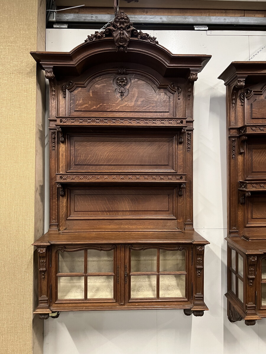 Louis XV Pair of French oak wood wall cabinets/vitrines.