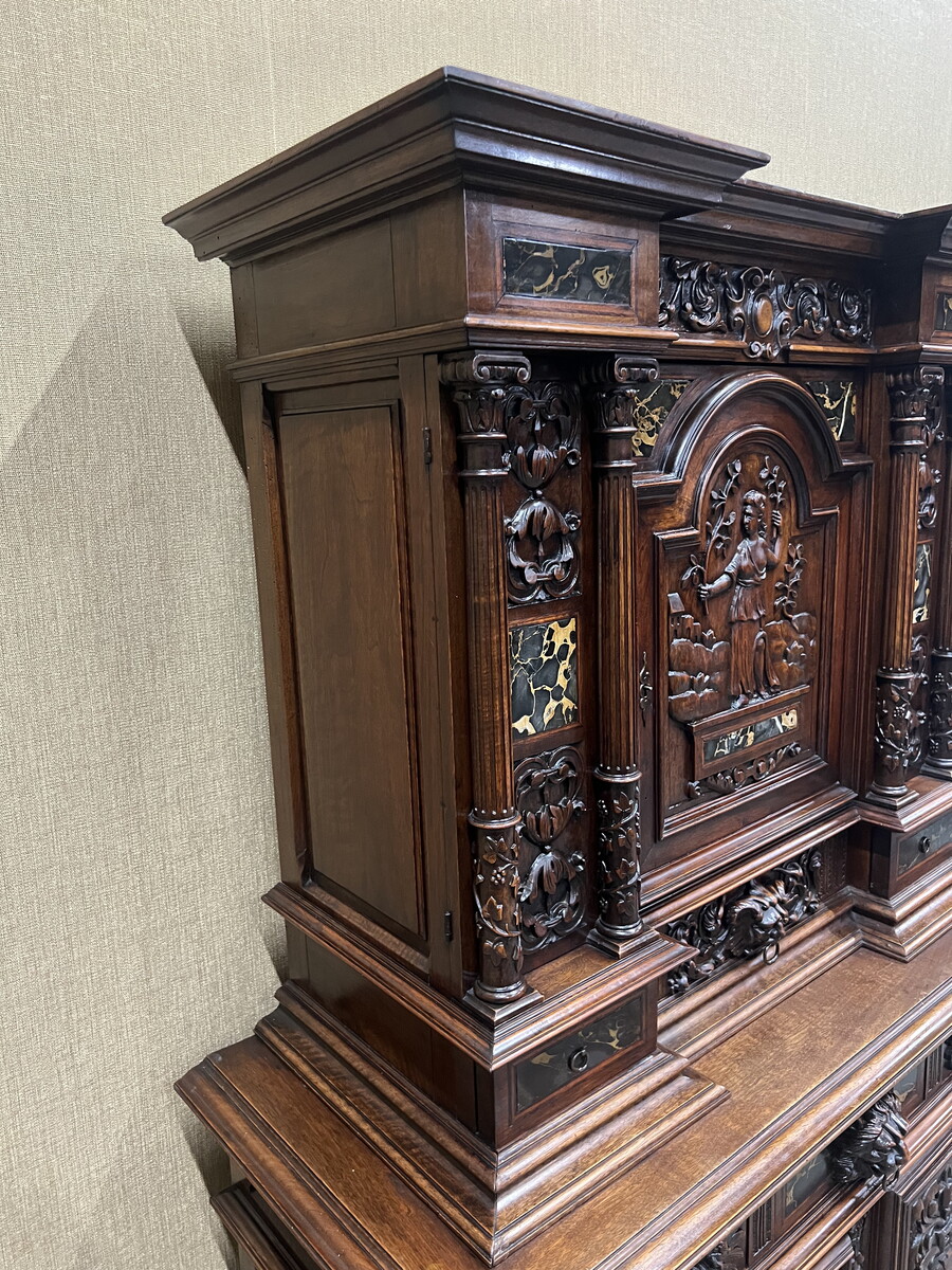 Renaissance cabinet with marble plates hight quality in walnut.