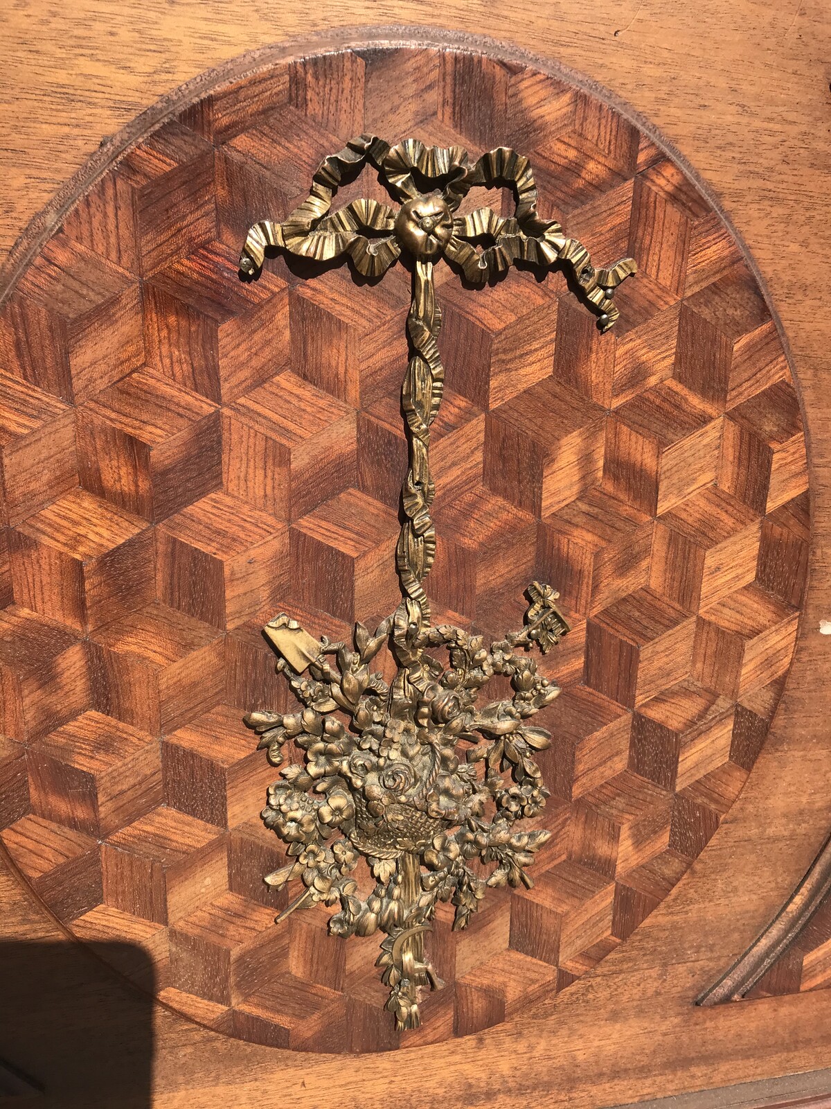 LXVI bedroom suite with bronze, 2 doors cabinet, nightstand, bed.
